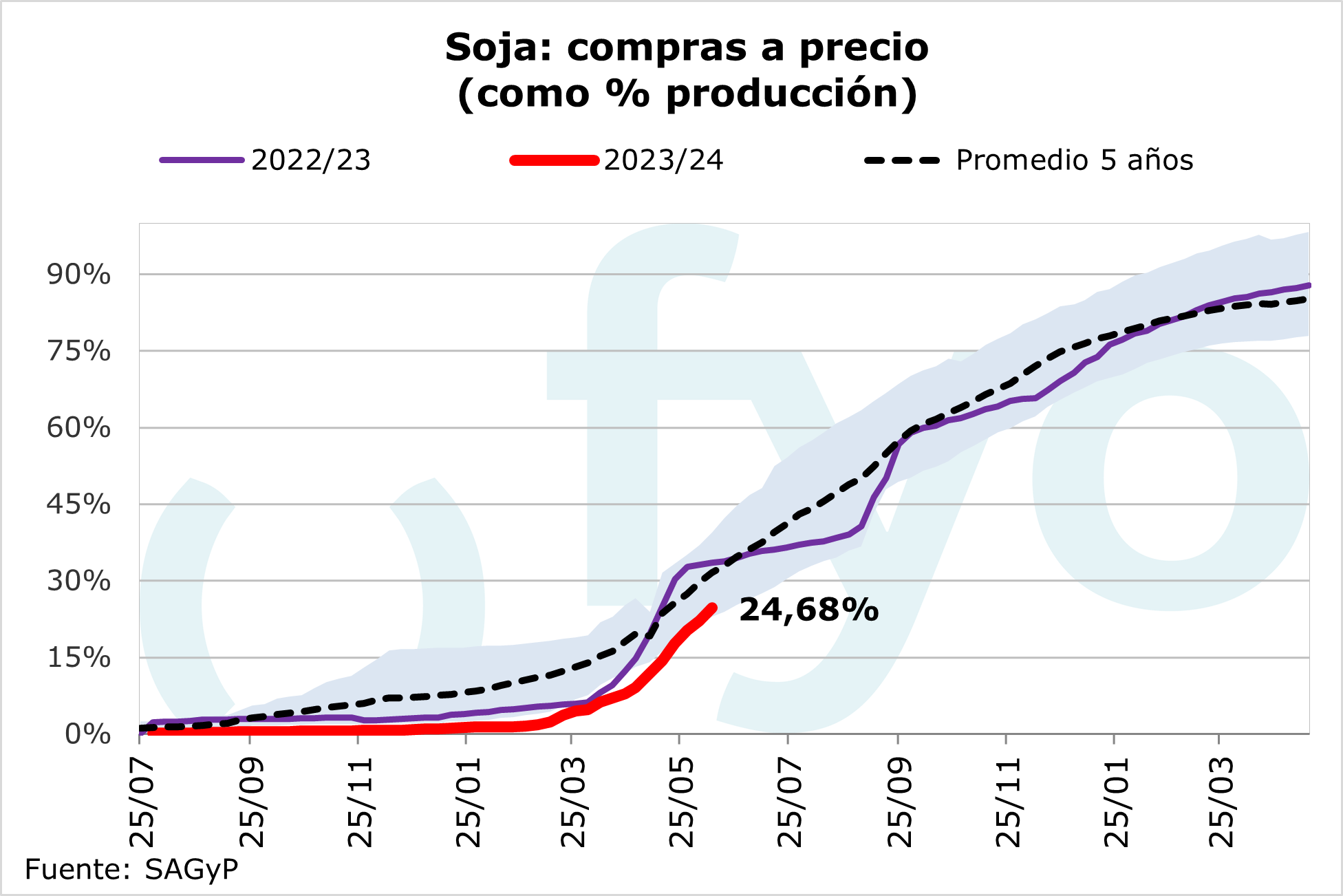 Caída en el volumen originado de soja 23/24