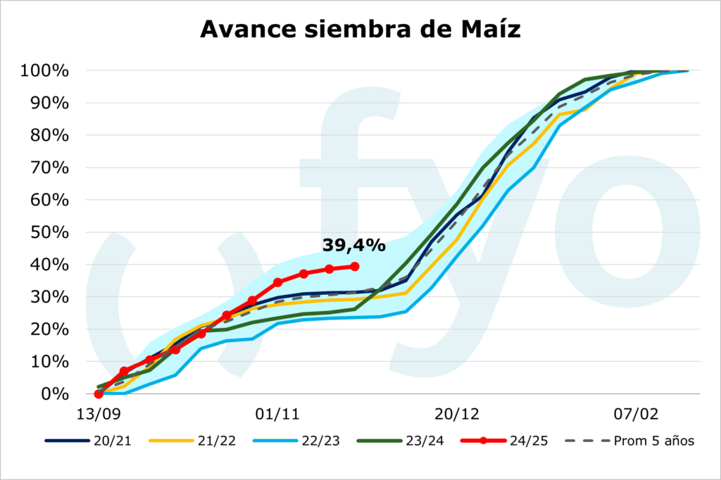 - La siembra mostró un avance de 0,8 pp., hasta el 39,4%, y se espera que la siembra de tardío comience las próximas semanas.