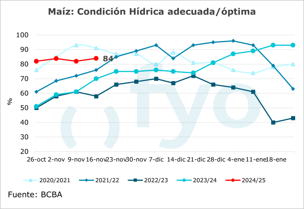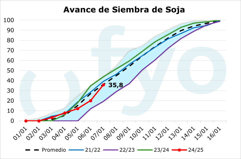 - La siembra alcanza el 35,8% del área (+16 pp. en la última semana).