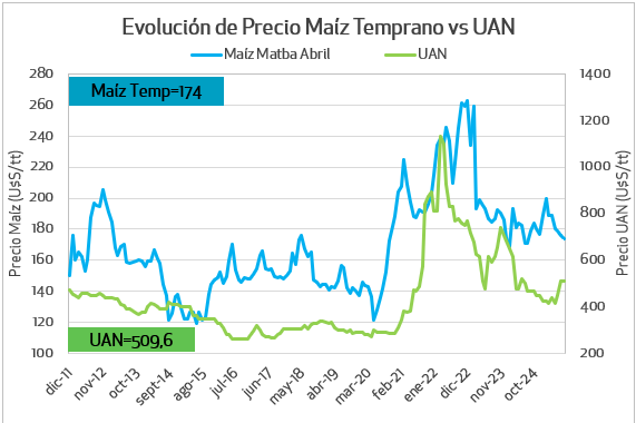 Respecto a los agroquímicos, los precios se mantienen bajos tanto a nivel local como internacional. Por este motivo, la oferta ha comenzado a recortar la producción, lo que podría generar un repunte de precios cuando la demanda se reactive de cara a la siembra gruesa.