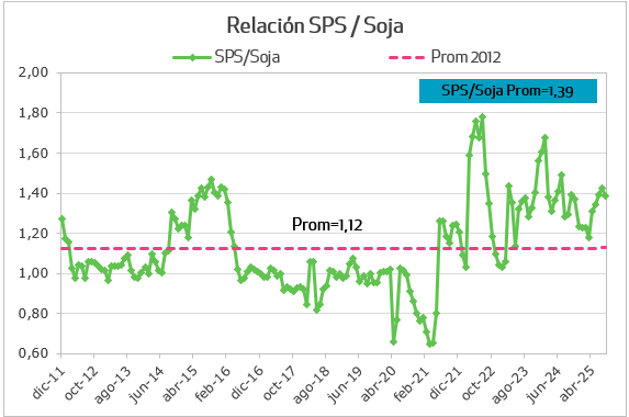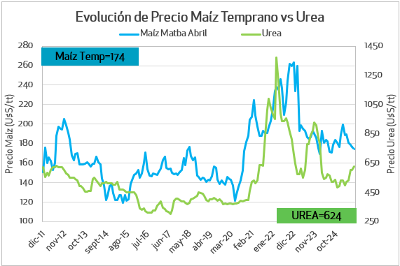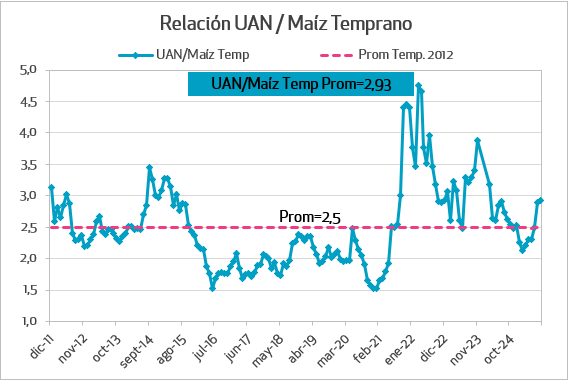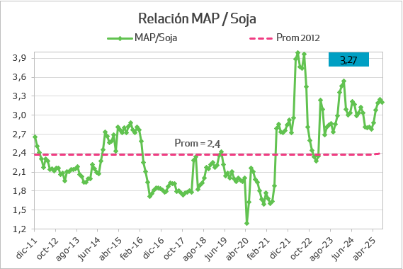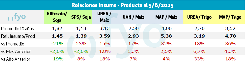 Durante el último mes, las relaciones insumo-producto se deterioraron para los cereales en un contexto de menores precios. En el caso de la soja, se observó una ligera mejora debido a la reducción en las alícuotas de los derechos de exportación.