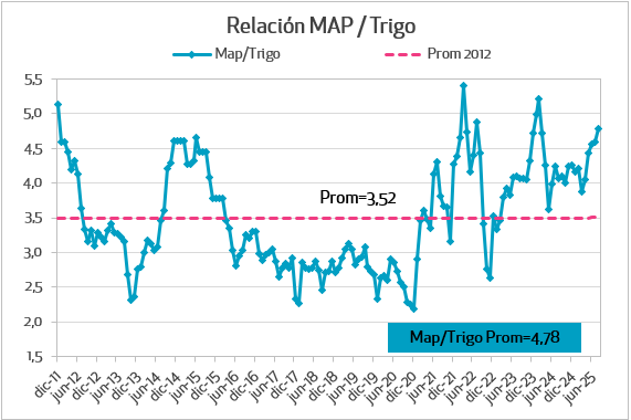 En este grupo, los precios de la urea vienen en alza, impulsados por factores internacionales. En particular, una licitación en India registró precios superiores a los de la licitación anterior. En cuanto a los fosfatados, continúa la tendencia alcista en el mercado local. Si bien el precio interno aún se encuentra por debajo del valor de reposición, se ha ido acercando progresivamente.