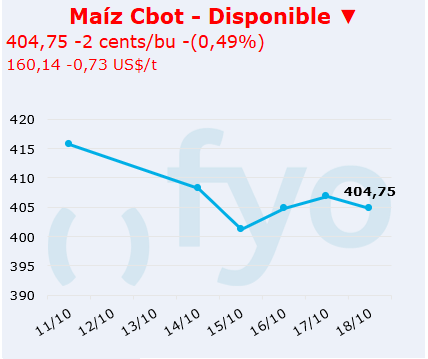 - El maíz en CBOT cotizó con débiles pérdidas.