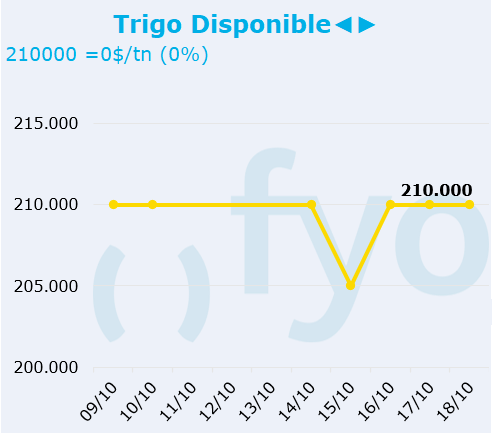 - Por trigo en Up River, la idea con entrega hasta el 30/10 estuvo en $ 210.000. Para la nueva cosecha, la idea fue de USD 210 con pago para la entrega noviembre/diciembre.