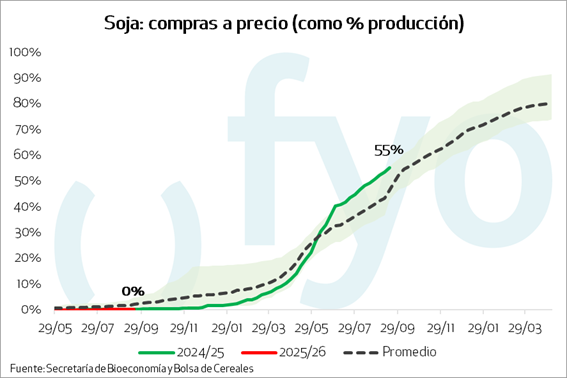 Por el lado de los granos gruesos, de soja veja se negociaron unas 890.000 tt. y de maíz unas 545.000, alcanzando los negocios con precio al 55% y 43% de la proyección productiva para cada cultivo respectivamente.