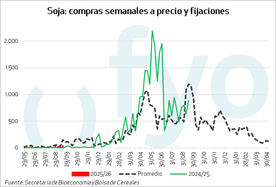 De la campaña nueva, los negocios de soja nueva informados fueron bajos -apenas unas 42.000 tt. - mientras que de maíz mostraron una mejora y se le puso precio a 220.000 tt.