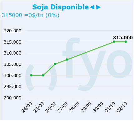 - Luego de un comienzo dubitativo con un CBOT que se posicionaba a la baja a la mañana, por la tarde se terminaron pagando $ 315.000 por soja disponible en Rosario, tanto físico como fijaciones, mismo que ayer. Un exportador pagó la entrega enero en USD 325.