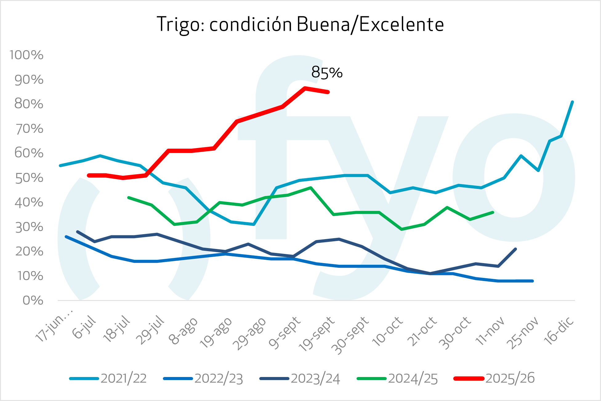 - El 54,6 % del área sembrada ya transita estadios críticos desde encañazón en adelante, manteniendo altas las expectativas de producción.