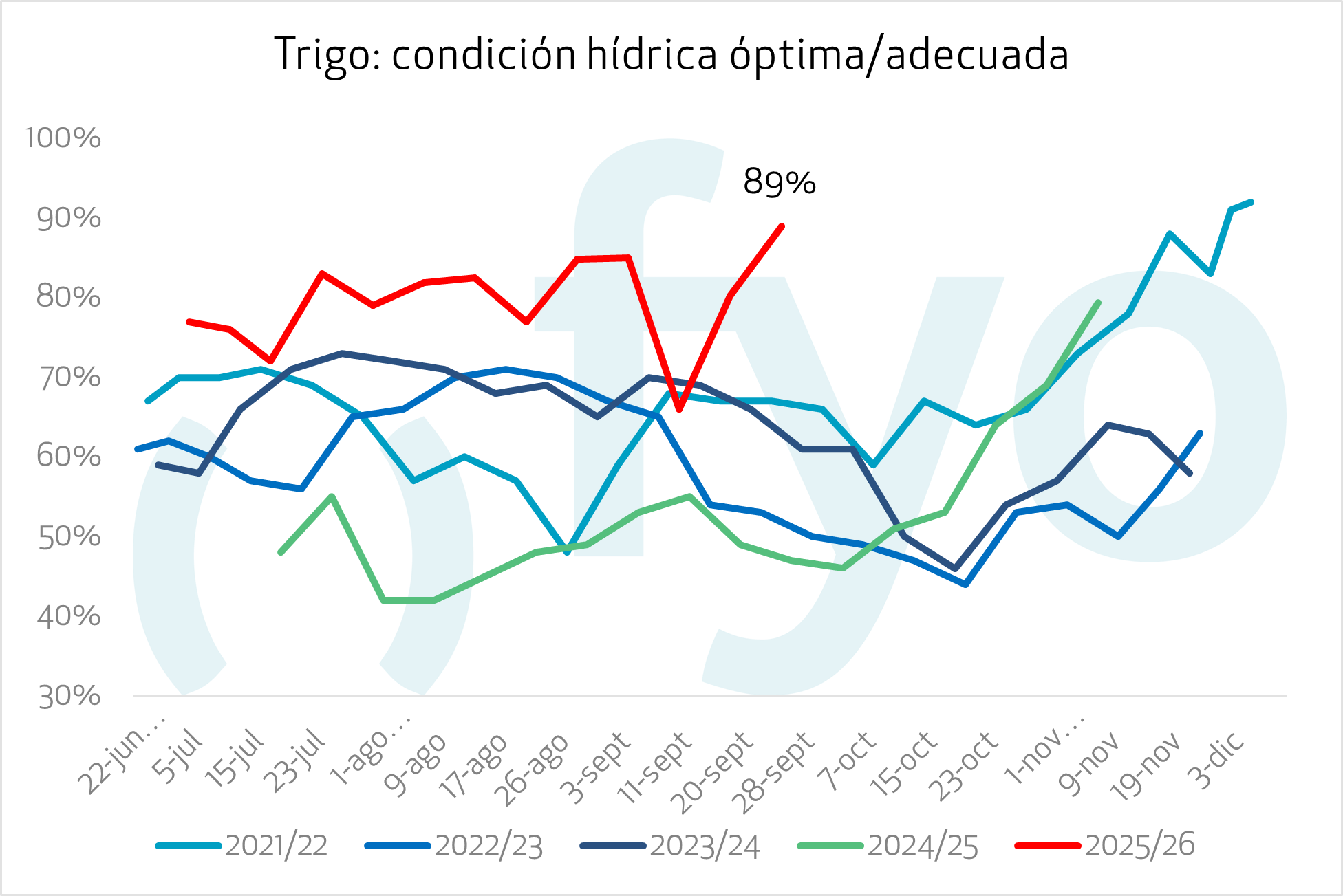 - Sobre el centro y sur del área agrícola, la alta disponibilidad hídrica provoca una creciente presión de enfermedades como royas y mancha amarilla.