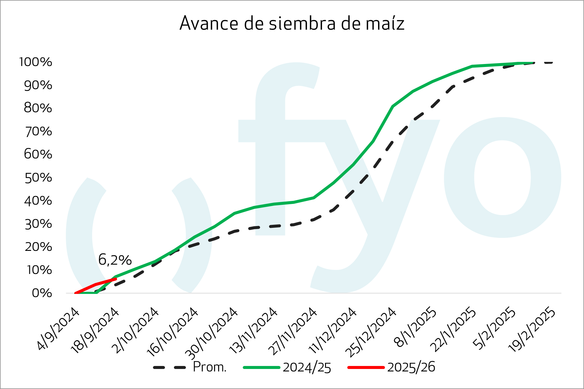 - En Córdoba, la buena disponibilidad hídrica impulsa la siembra temprana, que podría representar el 25 % de los planteos, superando el 15 % de la campaña anterior.