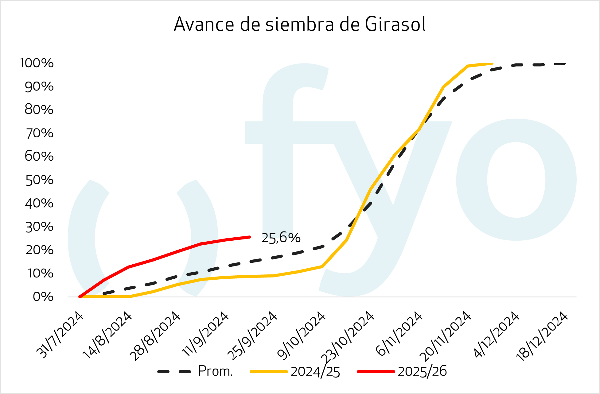 - La siembra cubre el 6,2 % de las 7,8 MHa proyectadas para la campaña 2025/26, con un ritmo acelerado para aprovechar la humedad disponible antes de nuevas lluvias.