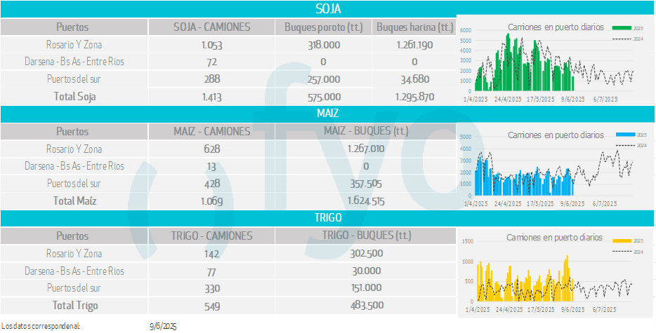 Buques: partiendo de los buques anunciados por las agencias marítimas o line-up se calculan las toneladas a cargar de cada uno de los distintos productos en cada puerto.