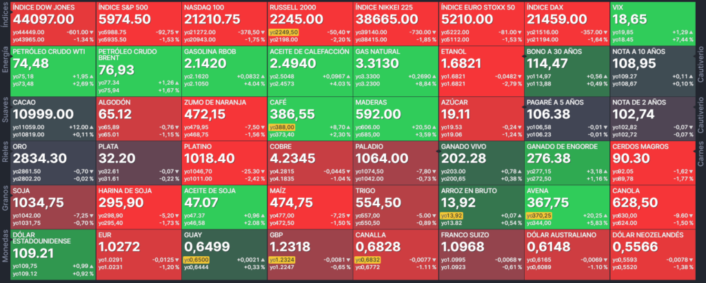 Índices, S&P500, NASDAQ 100, dow jones, DJIA.russell, S&P midcap, índice de volatilidad de S&P 500 VIX, índice de commodities S&P GSCI.