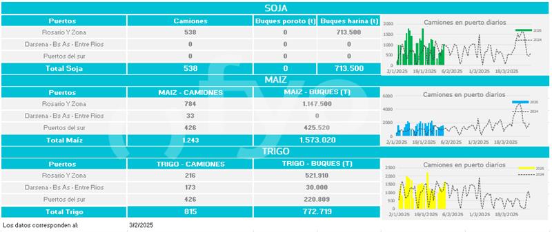Buques: partiendo de los buques anunciados por las agencias marítimas o line-up se calculan las toneladas a cargar de cada uno de los distintos productos en cada puerto.