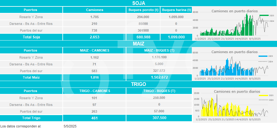 Buques: partiendo de los buques anunciados por las agencias marítimas o line-up se calculan las toneladas a cargar de cada uno de los distintos productos en cada puerto.