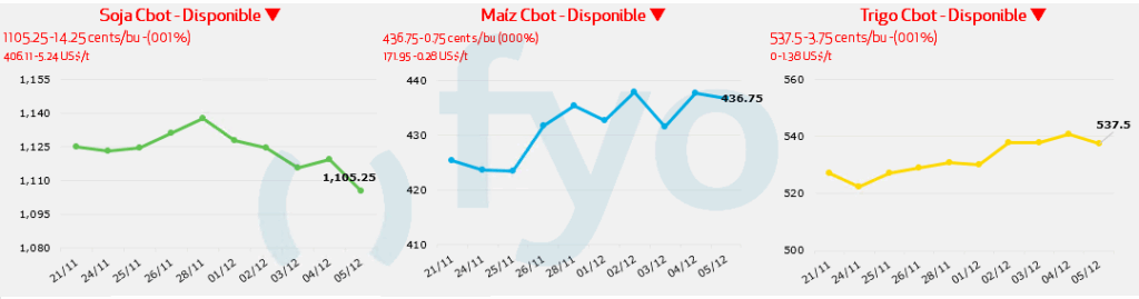 - El USDA confirmó ventas privadas de 462.000 toneladas de soja estadounidense a China para la campaña 2025/26. Desde el 30 de octubre, el sistema de reportes diarios ha registrado ventas por aproximadamente 2,7 Mt hacia dicho destino. El mercado muestra preocupación por la falta de continuidad en las ventas.