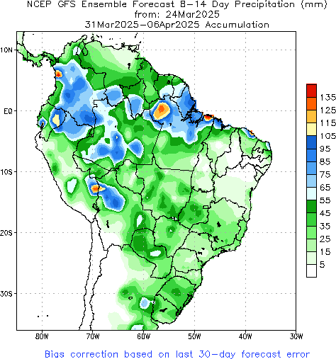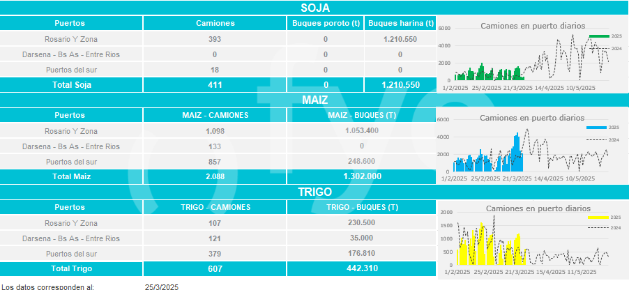 - Los operadores se están posicionando antes de los informes del USDA del próximo lunes 31 de marzo, los que proporcionarán estimaciones sobre las intenciones de siembra 2025 en EE.UU.. El mercado prevé que los agricultores planten más maíz