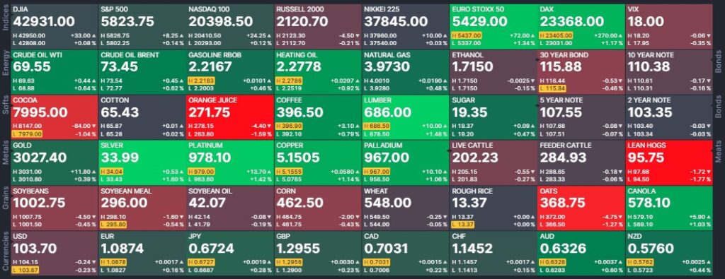 financieros bonos del tesoro de EEUU, bonos eurodollar, y tasas de la reserva federal de EEUU. Monedas índice dólar, libra, dólar canadiense, yen japonés, franco suizo,euro, dólar australiano, peso mejicano, dólar de Nueva Zelanda, rand de Sudáfrica y Rublo ruso.