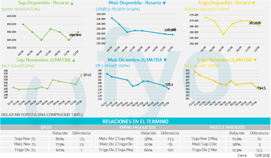 - Limitan las subas la presión bajista que ejerce la amplia oferta de granos forrajeros, especialmente el maíz, por ser granos sustitutos. La cosecha récord de maíz en EE.UU. aumenta la disponibilidad global de granos para alimentación animal, lo que genera una competencia directa con el trigo forrajero y presiona los precios a la baja.