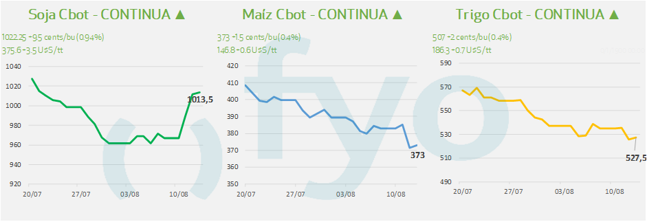 - El mercado de la soja en Chicago opera al alza, impulsado principalmente por un informe del USDA que proyectó una producción y existencias finales en EE.UU. por debajo de las expectativas del mercado, a pesar del proyectado rendimiento récord estimado tras ajustar a la baja el área sembrada.