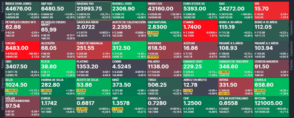 - El mercado del maíz en Chicago muestra una leve recuperación tras fuertes caídas de ayer desencadenadas por las proyecciones del informe de agosto del USDA en el que aumento en 26 Mt la estimación de produccion 2025/26 para EE.UU.