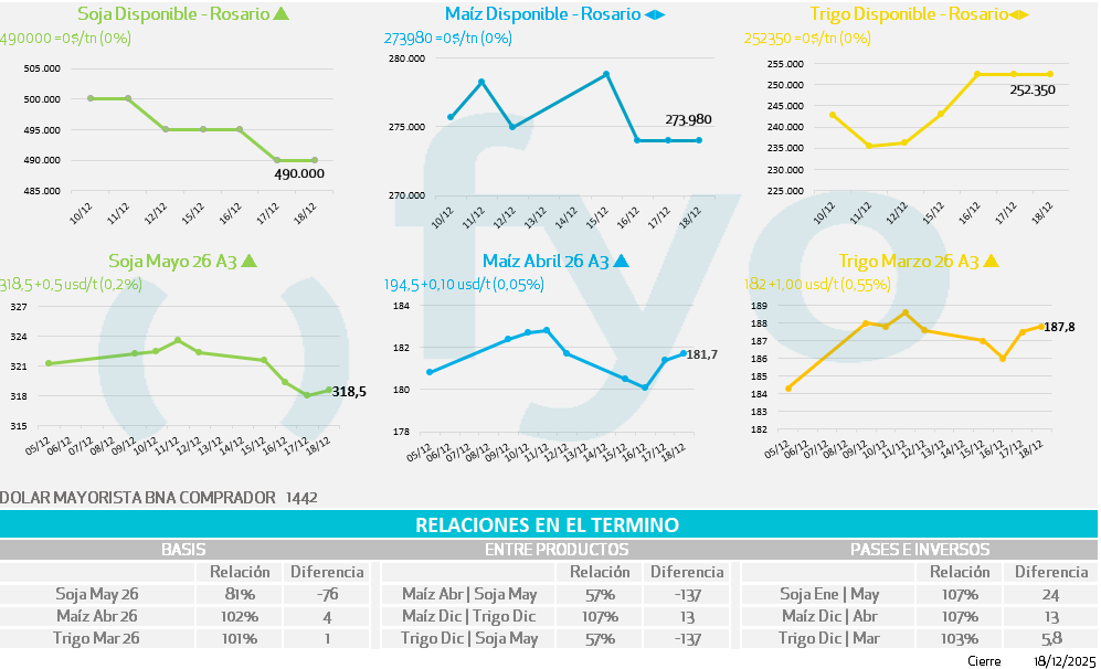 - El USDA reportó que las ventas de exportación semanales para la campaña 2025/2026 alcanzaron casi 1,8 Mt, cifra que se sitúa en la parte superior del rango proyectado por el mercado de 1 a 2 Mt.