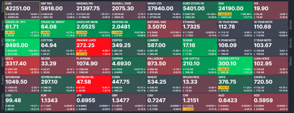 financieros bonos del tesoro de EEUU, bonos eurodollar, y tasas de la reserva federal de EEUU. Monedas índice dólar, libra, dólar canadiense, yen japonés, franco suizo,euro, dólar australiano, peso mejicano, dólar de Nueva Zelanda, rand de Sudáfrica y Rublo ruso.