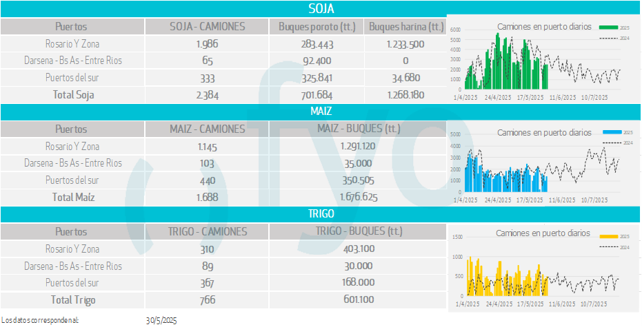 Buques: partiendo de los buques anunciados por las agencias marítimas o line-up se calculan las toneladas a cargar de cada uno de los distintos productos en cada puerto.