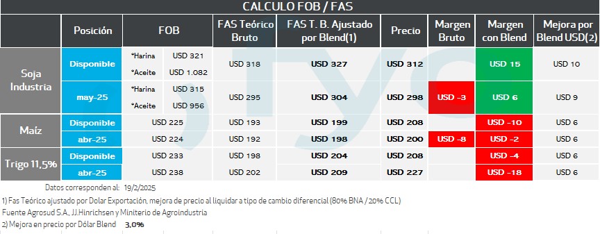 En el caso de la posición fábrica se parte de los precios FOB de los subproductos, luego se les aplica al valor del aceite, el porcentaje de rendimiento del poroto de soja para la extracción del mismo, y lo mismo en harina. Se suman estos valores, y se descuenta el costo de molienda estimado. El resultante es la capacidad teórica de la fábrica.