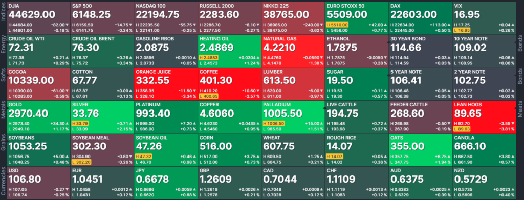 financieros bonos del tesoro de EEUU, bonos eurodollar, y tasas de la reserva federal de EEUU. Monedas índice dólar, libra, dólar canadiense, yen japonés, franco suizo,euro, dólar australiano, peso mejicano, dólar de Nueva Zelanda, rand de Sudáfrica y Rublo ruso.