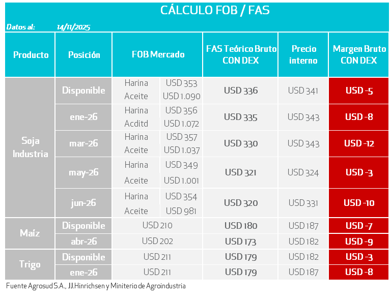 - Si bien el USDA redujo la producción de EE. UU. en 1,3 Mt, con stocks finales también cediendo, decepcionó la ausencia de compras de China en el listado de ventas “flash”. El informe solo recortó la previsión de exportaciones en 1,3Mt hasta 44,50 Mt aún ante un nuevo acuerdo con China que parecería no estar materializándose.