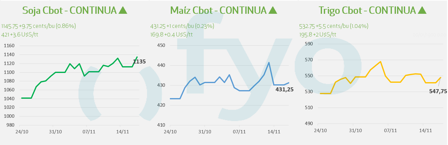 - Los futuros de la soja en Chicago con ligeras alzas, recuperándose de mínimos semanales alcanzados el pasado viernes tras darse a conocer los números del WASDE noviembre.