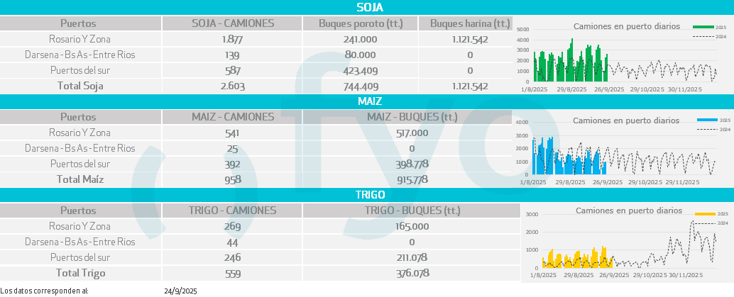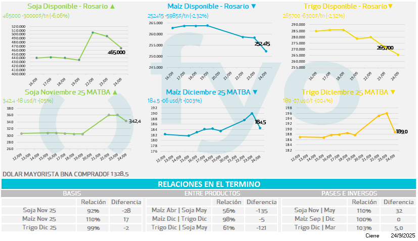 - Argentina ha reintroducido los impuestos a la exportación de granos y sus derivados después de que el programa de suspensión temporal alcanzara el límite de ventas de 7.000 millones de dólares en dos días. Operadores informaron que importadores chinos reservaron aproximadamente 20 cargamentos de soja argentina, equivalentes a 1,3 millones de toneladas.