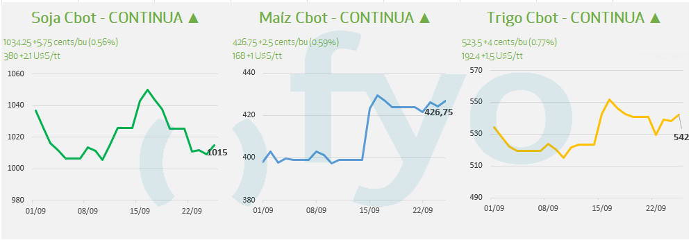- Las estimaciones de analistas para las existencias de soja en EE.UU. al 1/9 se ubican en 8,8 Mt, lo que representaría una disminución de 5,6% respecto al mismo período del año anterior.