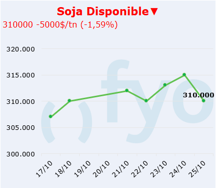 - El mejor valor para la soja fue pagado por una sola fábrica por volumen limitado en $310.000. Luego, el mercado se detuvo en los $305.000.