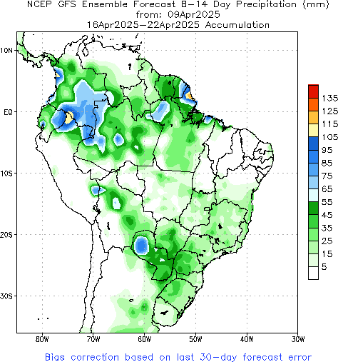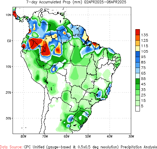 - Las últimas lluvias en las planicies estadounidenses llevaron a una reducción en el área de maíz bajo condición de sequía de 39% a 22%.