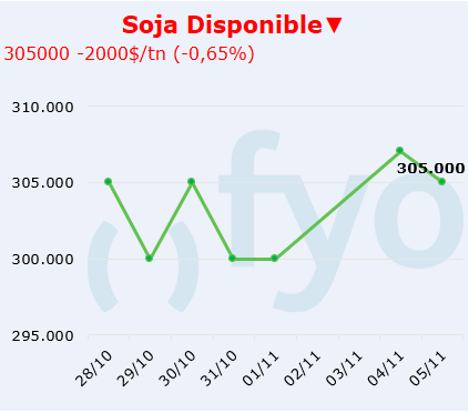- En la jornada de hoy, con CBOT alcista, la oferta comenzó pidiendo $ 310.000. Las fábricas, sin embargo, no tuvieron intensión de convalidarlo, generalizando los $305.000.