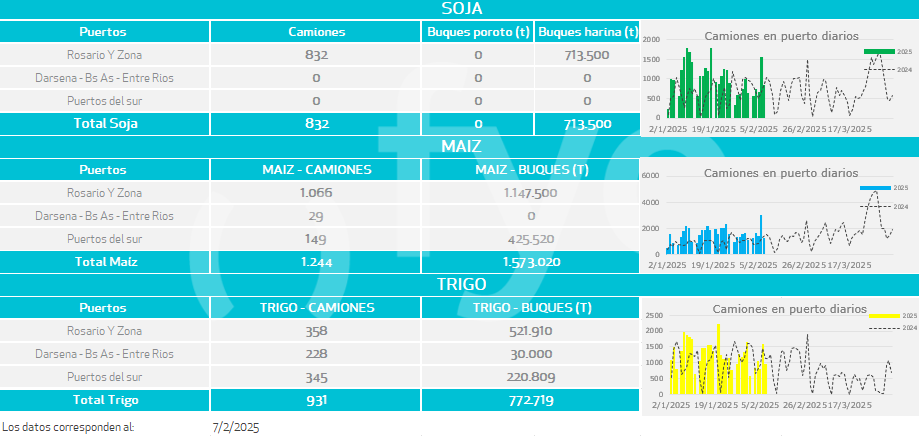 Buques: partiendo de los buques anunciados por las agencias marítimas o line-up se calculan las toneladas a cargar de cada uno de los distintos productos en cada puerto.