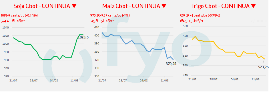 - Las importaciones de aceite de soja en India durante julio aumentaron un 37% respecto al mes anterior su nivel más alto en tres años. En contraste, las importaciones de aceite de palma cayeron un 10.5%. A pesar del buen dato indicador de demanda, el aceite de soja se negocia con pérdidas también por toma de ganancias después de tres rondas de mejora.