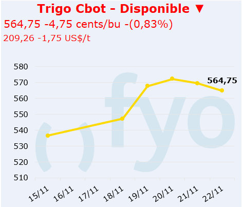 • Jornada bajista para el trigo en Chicago, con caídas de 1% aproximado en todas las posiciones.