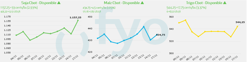 - Los futuros de maíz también registraron subidas, siguiendo la tendencia del complejo de soja.