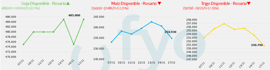 - Por soja disponible se pagaron $ 485.000 por físico y fijaciones en Rosario.