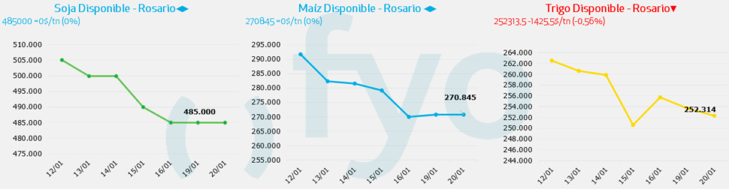 - Por soja disponible en Rosario se pagaron $ 485.000, tanto por la mercadería con descarga como por fijaciones, por parte de las fábricas