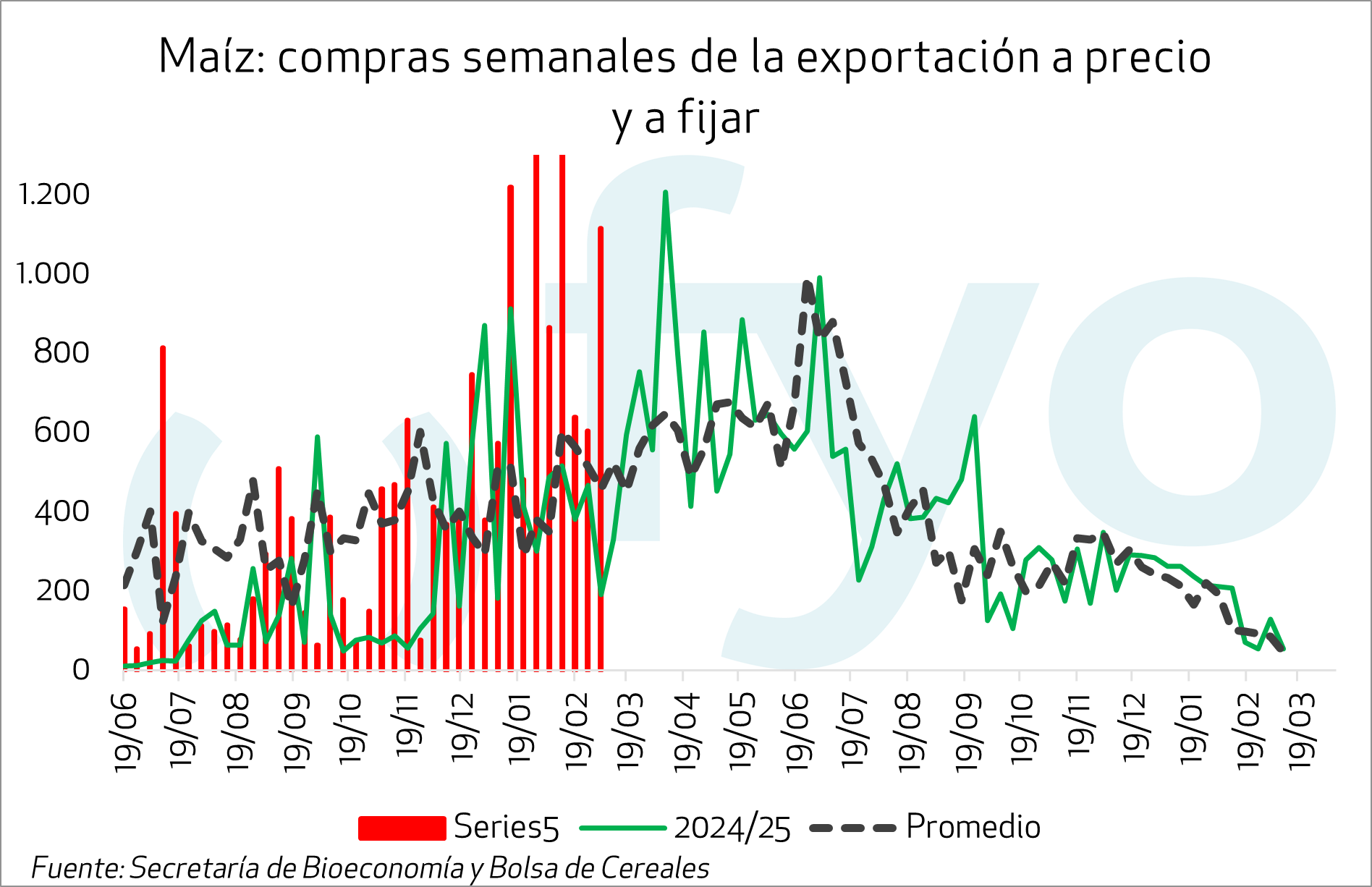 En maíz, aumenta el volumen negociado de la nueva en 900.000 toneladas, con solamente 100.000 a fijar.