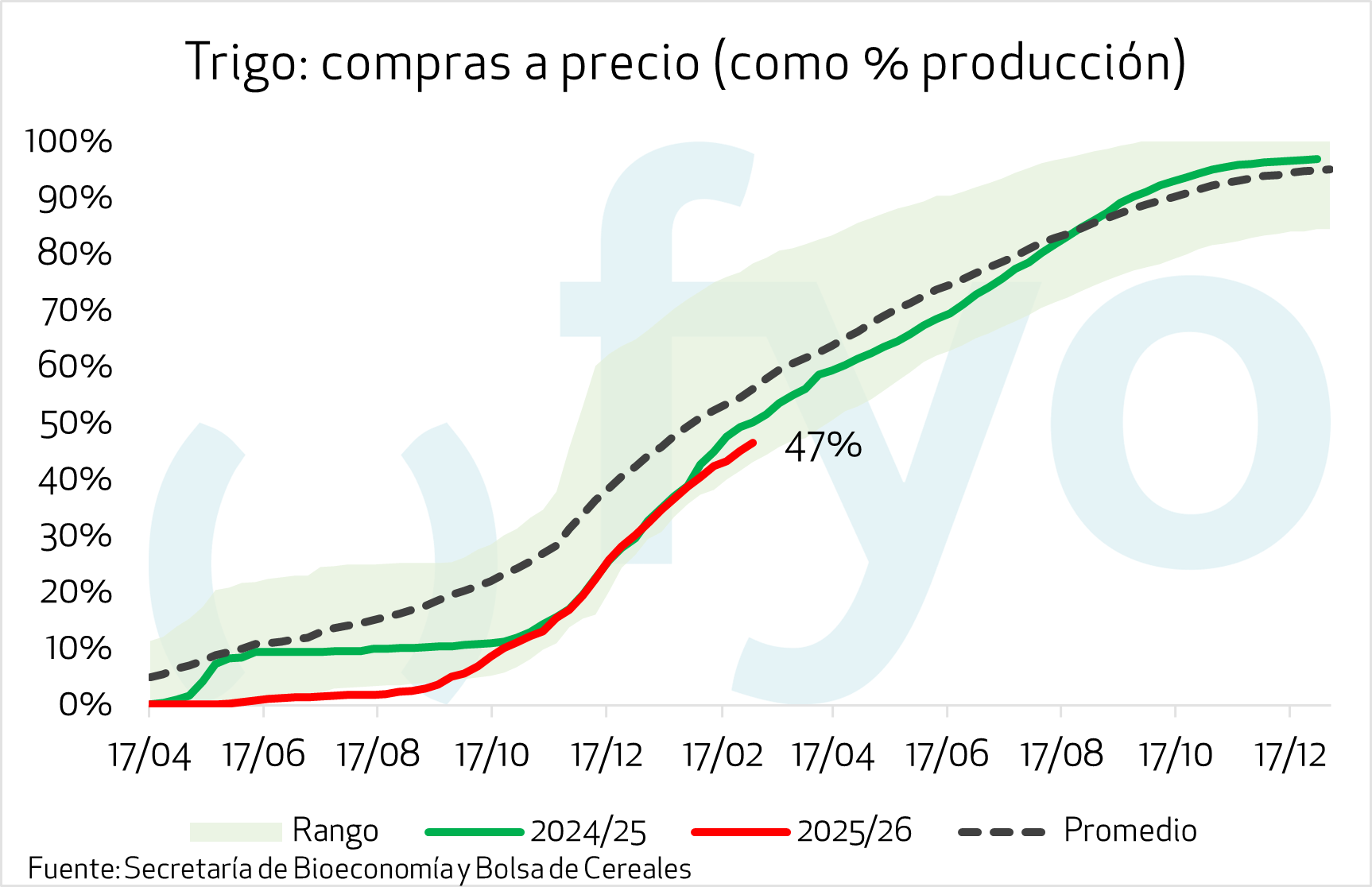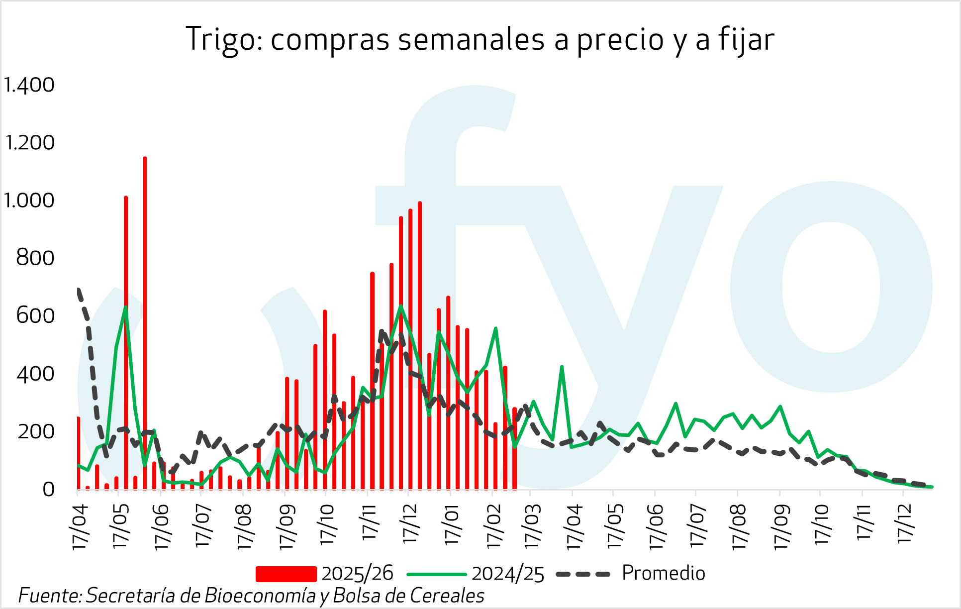 En lo que respecta al trigo, el volumen semanal fue de 300.000 toneladas, quedando aún un 52% de la mercadería sin precio.
