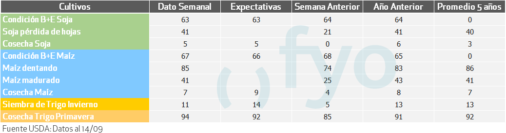 ESTADO DE CULTIVOS NORTEAMERICANOS AL 14 DE SEPTIEMBRE:
