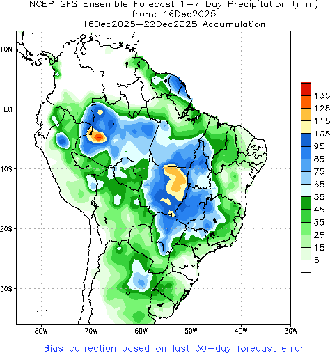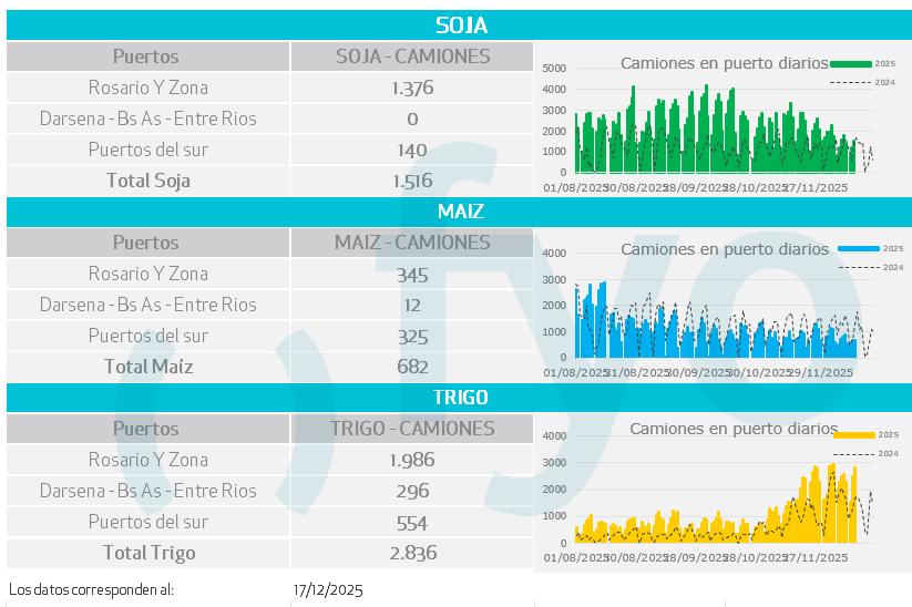 - El Ministerio de Economía de Ucrania informó que las exportaciones de trigo del país cayeron a 7,5 Mt en lo que va de la temporada 2025/26, frente a los 9,2 Mt del mismo período de la temporada anterior.