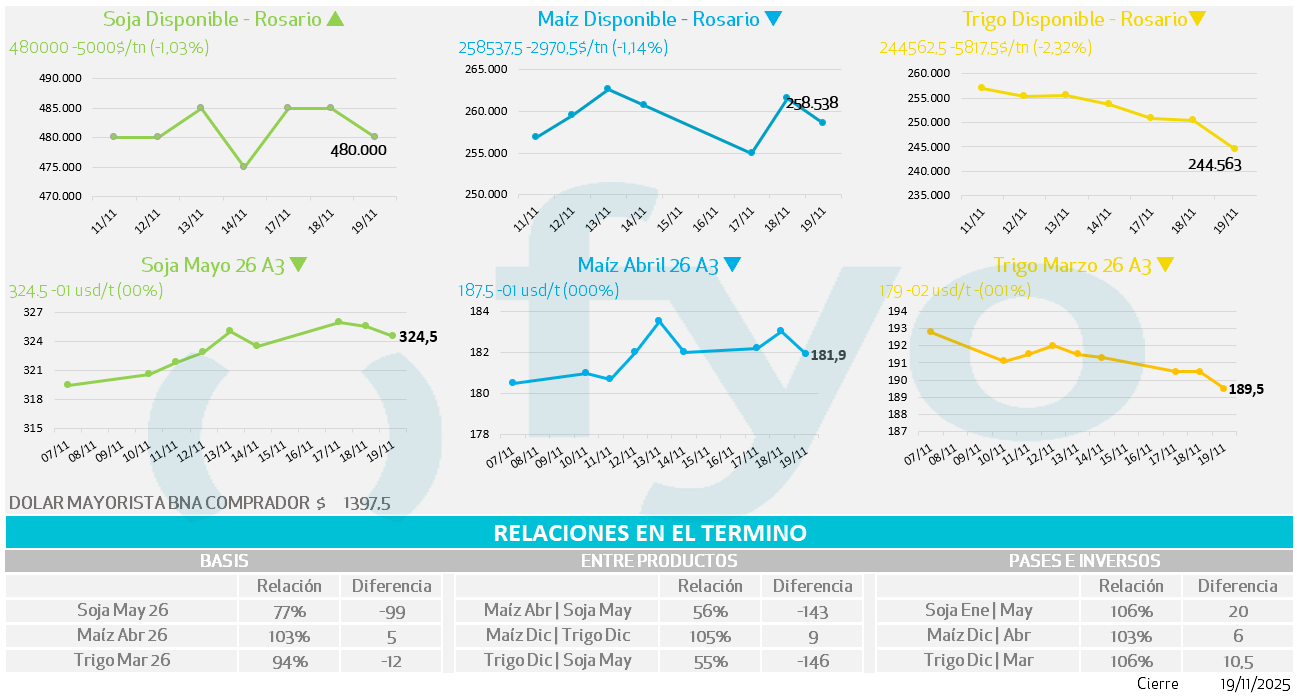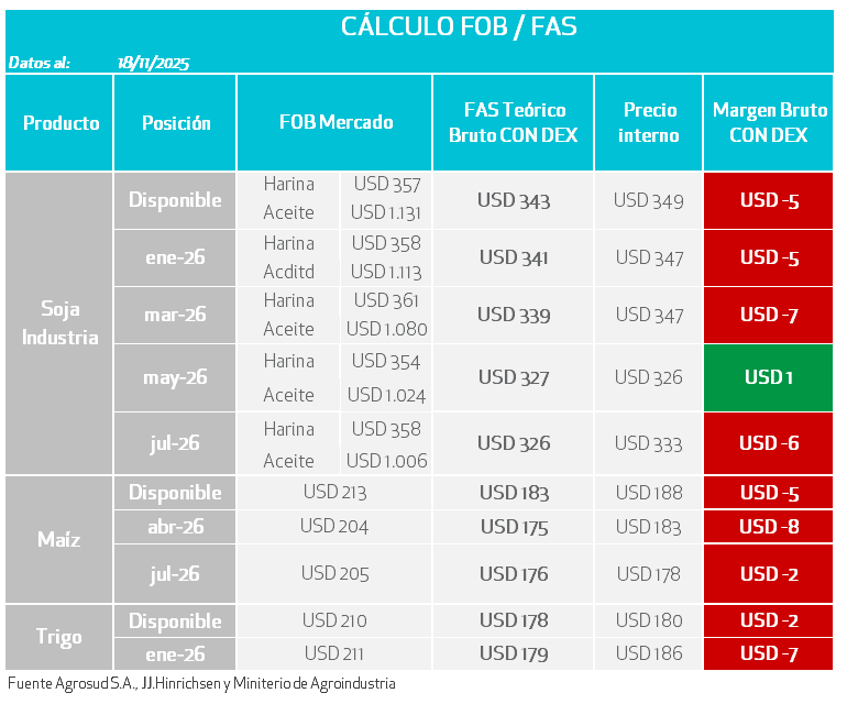 - El importador surcoreano NOFI adquirió aproximadamente 195.000 tn para alimentación animal con precio CIF estimado de 249,46 USD/t para arribo en marzo de 2026.