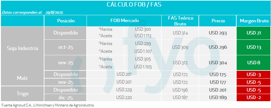 - Los futuros de aceite de palma de Malasia subieron más de un 2% por compras de oportunidad y datos de exportaciones robustas. El aceite de soja, acompañando la mejora de la palma y el crudo, también se negocia con ganancias.