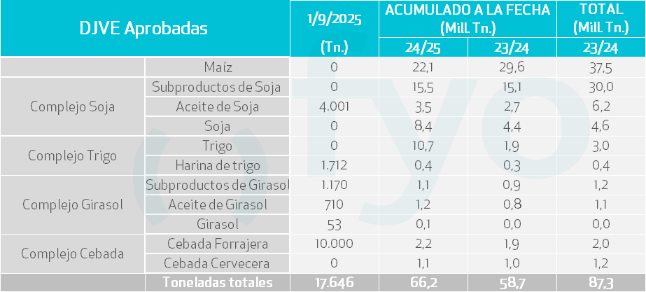 - Las exportaciones de aceite de girasol de Ucrania para la campaña 2024/25, que finalizó en agosto, totalizaron 4,73 Mt una caída del 24% interanual atribuida a una menor cosecha de la oleaginosa. Para la campaña 2025/26, se proyecta que las exportaciones puedan alcanzar 5,7 Mt.